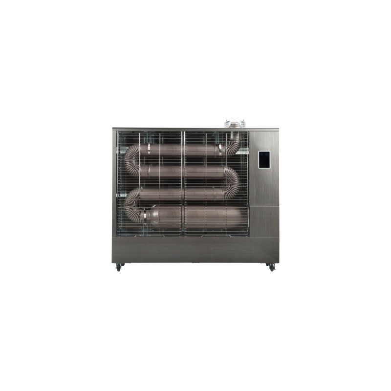 Extremt tystgående dieselvärmare som arbetar med IR-strålning istället för en fläkt som låter luften cirkulera. IR-strålningen som apparaten genererar värmer upp material, inte luft. Infravärmen fördelas jämnt åt alla håll och är angenäm även när man vistas i närheten av värmaren. Värmaren har en trefaldig förbränning av bränslet som minimerar utsläppen av rök och lukt. Värmaren är lämplig för hallar, garage, tält med mera. Hjul under gör den lätt att flytta runt i lokalerna. Med fjärrkontrollen kan du ställa in en lämplig temperatur på 0-40°. Den stora tanken ger en drifttid på ett dygn. Flerfaldig säkerhet med flamövervakning, överhettningsskydd, tippskydd och överströmsskydd ger en säker drift. Utrustad med enkel soft-touch kontrollpanel med LED-skärm. Fjärrkontroll ingår.